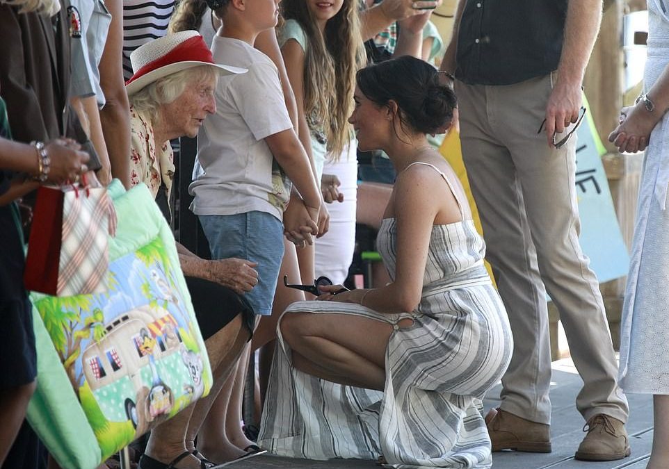 Meghan Markle and Prince Harry locked hands as they walked along a jetty on picturesque Queensland’s Fraser Island. Meghan Markle was seen wearing a sleeveless ankle – length transparent dress exposing her longs legs. Meghan looked stunning in this outfit and we love how she paired this dress with a brown strap sandals appearing radiant and confident.