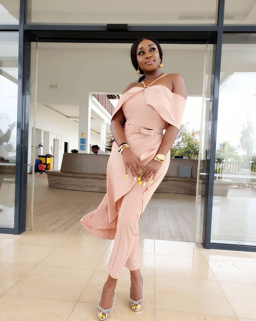 Actress Ini Edo In This Peach Off-The-Shoulder Outfit Is Everything You Want To See Today