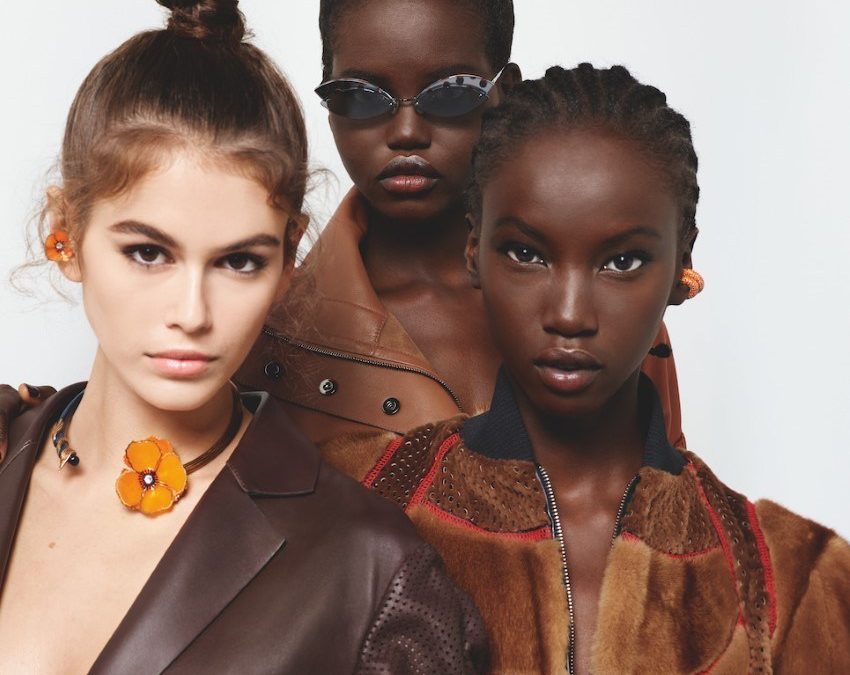 The late Karl Lagerfeld captured Fendi’s Spring/Summer 2019 campaign starring Adut Akech, Anok Yai and Kaia Gerber at the Fendi headquarters in Italy.