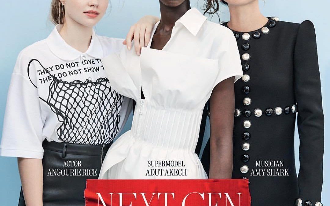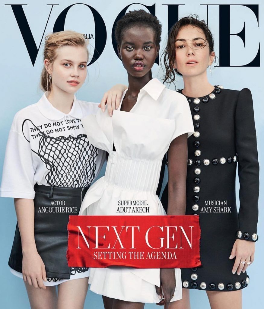 South Sudanese model Adut Akech joins Amy Shark and Angourie Rice in “The Next Gen” March 2019 Issue of Vogue Australia.