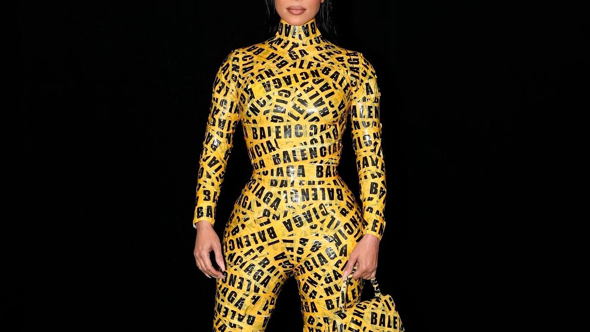 Kim Kardashian turned heads when she showed up at Balenciaga‘s Fall 2022 Paris Fashion Week show wrapped in bright yellow/black tape, topping off her outfit with a matching bag. Originally believed to be a custom accompaniment for her look, Balenciaga has now made the striking bag available.