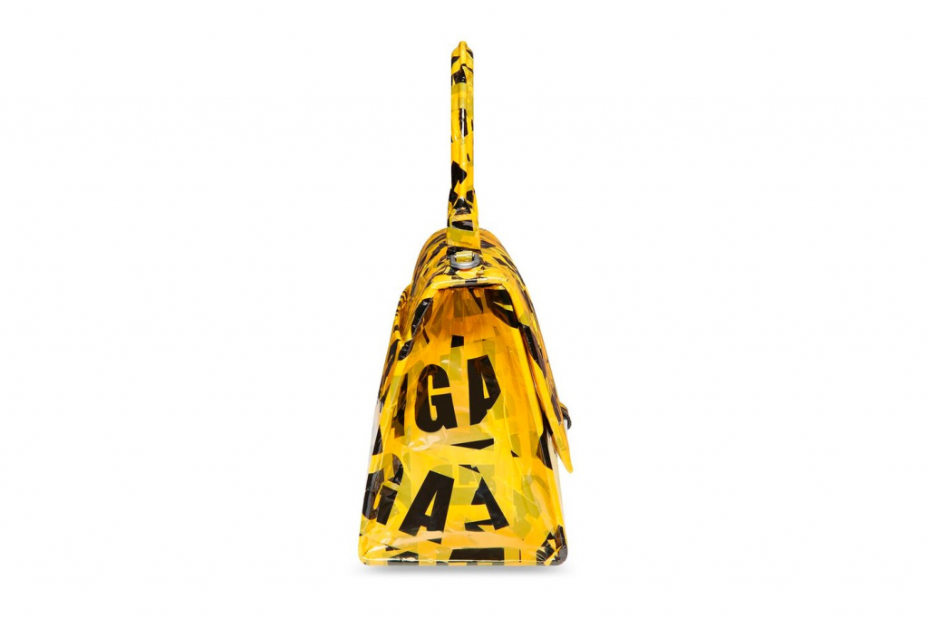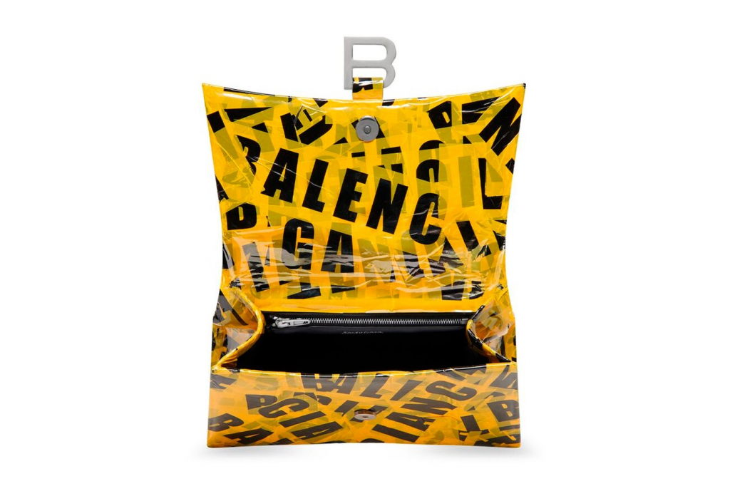 The “Hourglass Small Handbag in Box With Tape in Yellow” serves as yellow/black tape take on one of Balenciaga’s popular baggage options. Priced at $3,100 USD, the release is limited-edition and handmade, making each piece unique.
