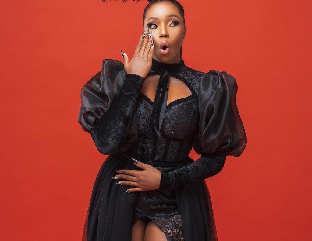 For her new photoshoot, the BBNaija 2018 housemate looks stunning in a timeless lace and velvet mini dress with exaggerated bishop sleeves. The dress designed by Trish O Couture is snapped at the waist and made more dramatic with a floor-length extended train.