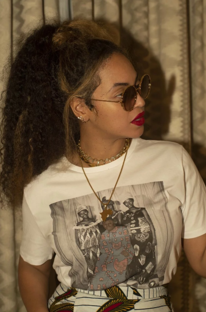 She stepped out on Monday in a simple look that commanded attention still. Bey wore an urban white T-shirt from Afrikanista paired with a deep-slit asymmetric Ankara skirt and perspex mules. The Adjoua skirt is from Yhebe Designs and both items are available on our go-to platform for all things African and cool – Afrikrea!