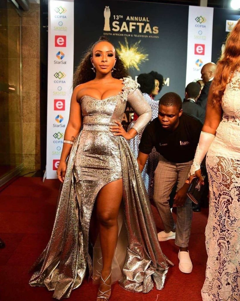 Boity Thulo Looked Stunning In This Daring Silver Look On The #SAFTAS13 Red Carpet
