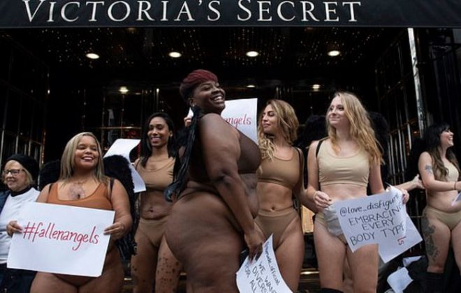 Plus-size women strip to their bikini to protest against Victoria’s Secret