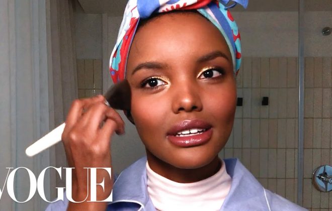 Model Halima Aden shows her everyday skincare routine along with her go-to, Friday night, party look. Watch below.