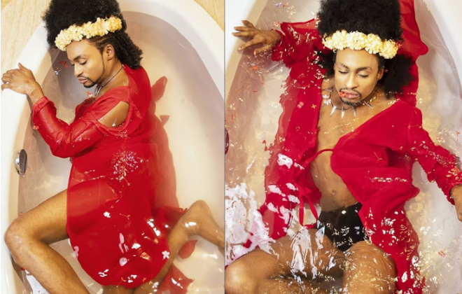 Media personality, Denrele Edun, is causing a stir online after he shared these photos of himself posing in a bathtub. See full photos below.