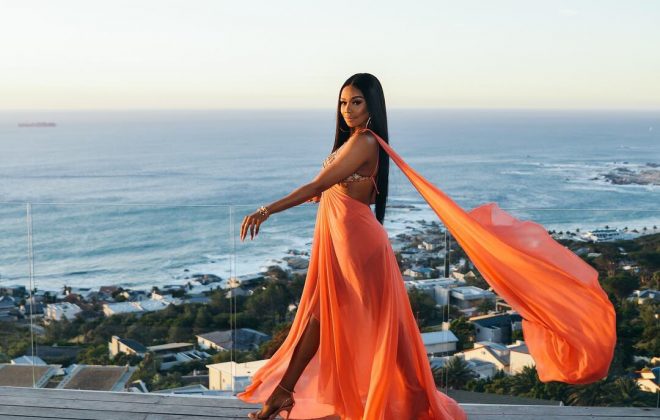 South African television personality, Bonang Matheba is way chicer than you thought in this burnt orange ensemble by Villioti Fashion Institute. While posing in the Capetown sunset on a rooftop over the weekend, Bonang served us with a flowing silk organza dress. One of the highlights of this dress…