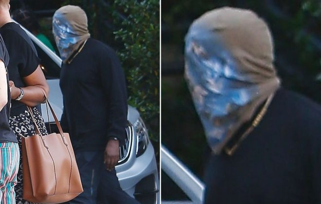 Kanye West Wears Bag-Like Face Covering In L.A With No Wedding Ring