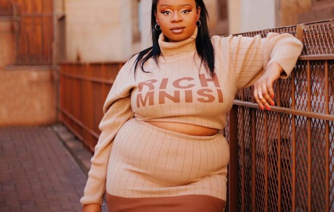 Curvy #BellaStylista Lesego Legobane is giving us many reasons to love Rich Mnisi‘s AZANIA capsule collection. For her latest look, Thickleeyonce stuns in a brown matching knitwear set; consisting of a cropped turtleneck top and a mini skirt which she paired with comfy white kicks and bright white socks. The…