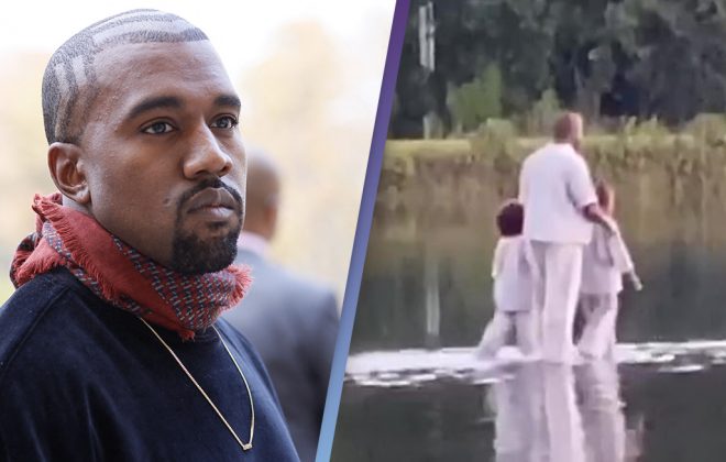 VIDEO: Kanye West & His Children ‘Walk On Water’ As Wife Kim Kardashian Joins
