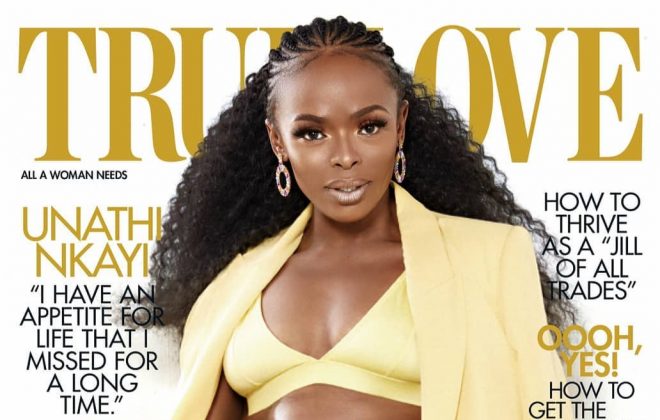 Seasoned broadcaster Unathi is the cover star for TrueLove Magazine‘s April 2020 issue! This is her sixth cover for the magazine since 2011. For this issue, she stuns in a yellow pants suit styled with a matching crop top by Tsakane Ndlovu, the look was finished off with soft…