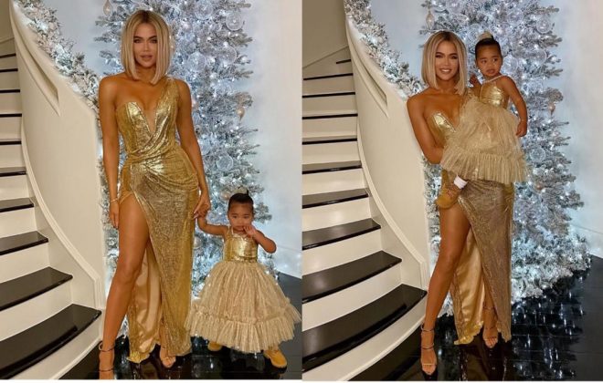 Khloe Kardashian & Her Daughter Match Golden Looks At Family Christmas Party