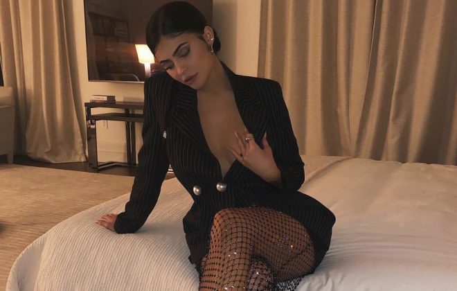 Weekend Slay! Kylie Jenner Stuns In Pinstripe And Sparkling Fishnet Combo