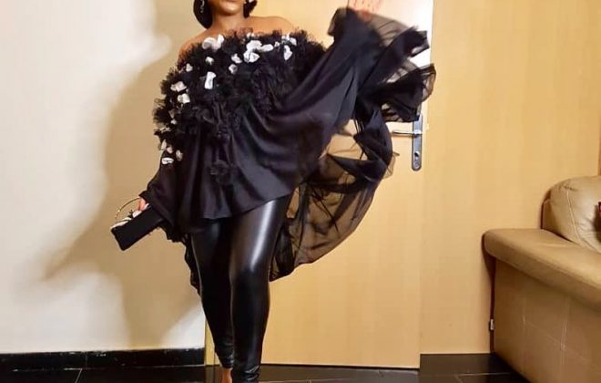 Movie star Rita Dominic was one of the celebrities spotted on the third day of the ongoing Lagos Fashion Week. The 43-year-old actress was gorgeous in a custom LadeBeellionaire Luxury top with wet look leggings, accessorized with a pair of black pumps. Check on it!