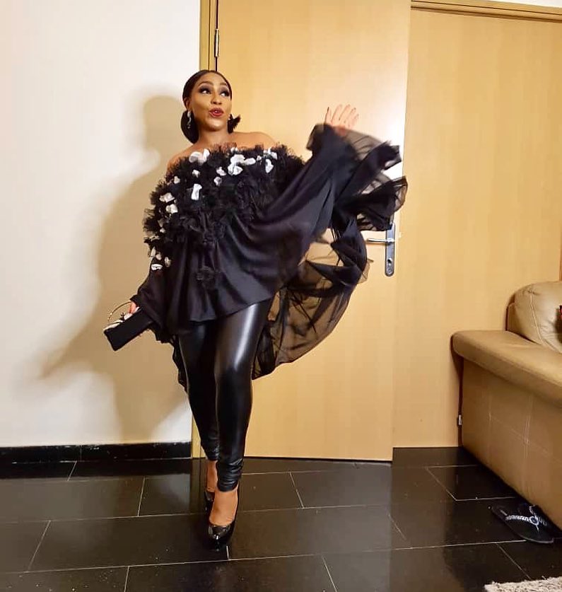 Movie star Rita Dominic was one of the celebrities spotted on the third day of the ongoing Lagos Fashion Week. The 43-year-old actress was gorgeous in a custom LadeBeellionaire Luxury top with wet look leggings, accessorized with a pair of black pumps. Check on it!