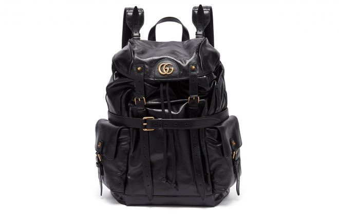 Following on from its recent tapestry-constructed bag from its daring Spring/Summer 2019 collection, Gucci has gone back to basics with its latest black and gold backpack. The Gucci GG-plaque crinkled leather backpack is a showcase of its craftsmanship, finished with antiqued gold-tone metal detailing and hardware. In addition to the archetype…