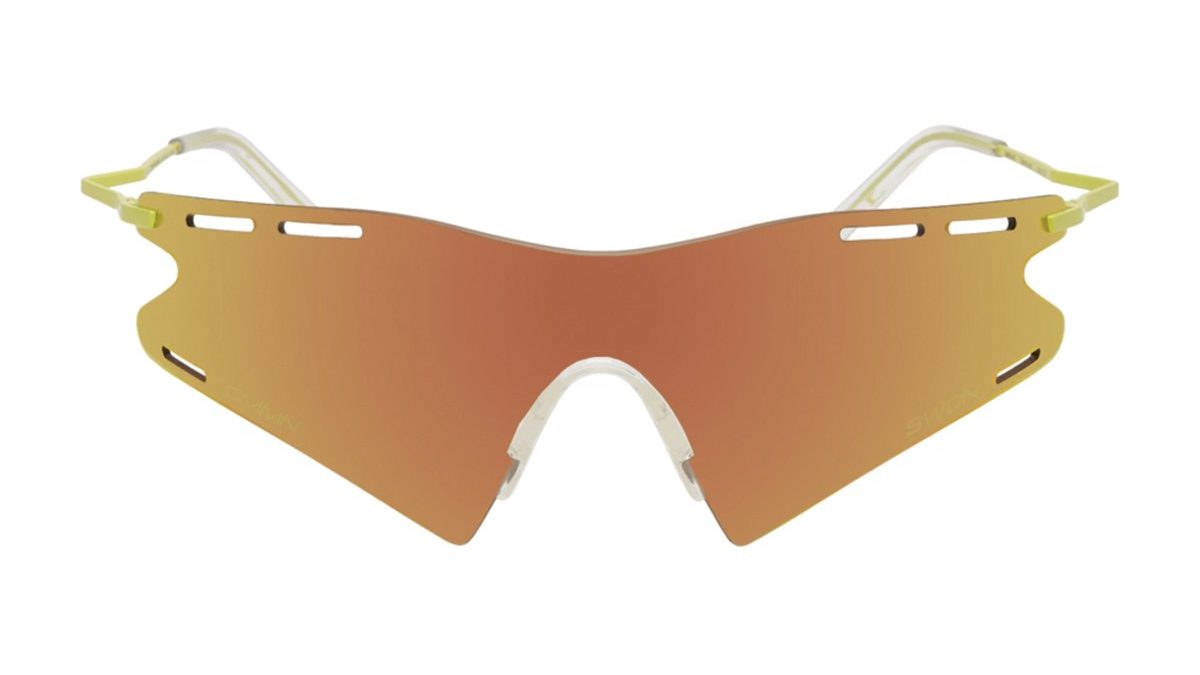 Available “Lime Green/Flame Red” and “Lime Green/Fog Black,” the shield-style Le Monde Sunglasses serve as a perfect example of a seamless mashup of fashion and function. The 100 percent UV protection lenses utilized are done in contrasting reflective tones and marked with CMMN SWDN logos and the style name in bright green. Transparent rubber nose pads, green wire arms with transparent acetate tips and sculpted temples round up the design of the frames. Additionally, each pair of sunglasses comes with a logo-printed soft mesh case with a secure zip closure.