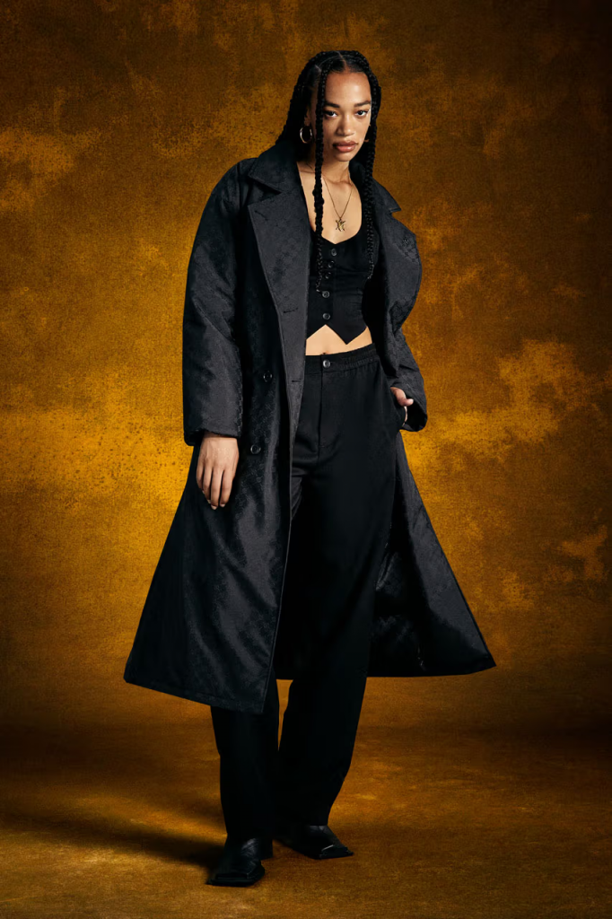 Rounding off the collection, Daily Paper’s oversized black trench coat is finished with double-breast detailing alongside double-button closure, a sharp collar, and a removable belt. The jacket also includes welt pockets and a metal Daily Paper Shield pin on the left lapel.