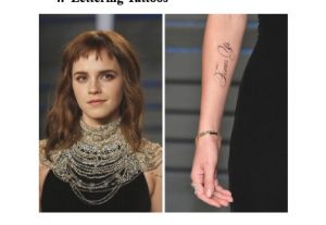 On top of that, lettering tattoos on the neck are also on the rise. Sofia Richie has the word “clarify” printed on her neck. What is more, Emma Watson Debuted a “Time’s Up” tattoo at the Oscars Afterparty. She showed off a “Time’s Up” tattoo to support the Time’s Up movement. This movement was created to stand against sexual harassment and abuse in Hollywood and other industries. And stars use the platform on the red carpet to stand in solidarity. This lettering tattoo does not only perform an aesthetic function but also it has a deep meaning.