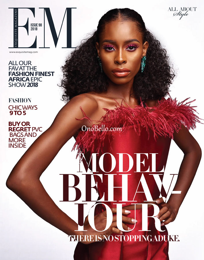 The 98th issue of the Exquisite magazine is out starring Aduke Shitta Bey, a fast rising model on the cover. The young, fierce and beautiful model talks about her career and life in the fashion industry as a model. This issue also has eye watering images from designers at the Fashions Finest Africa as well as exclusive interview with the trio.