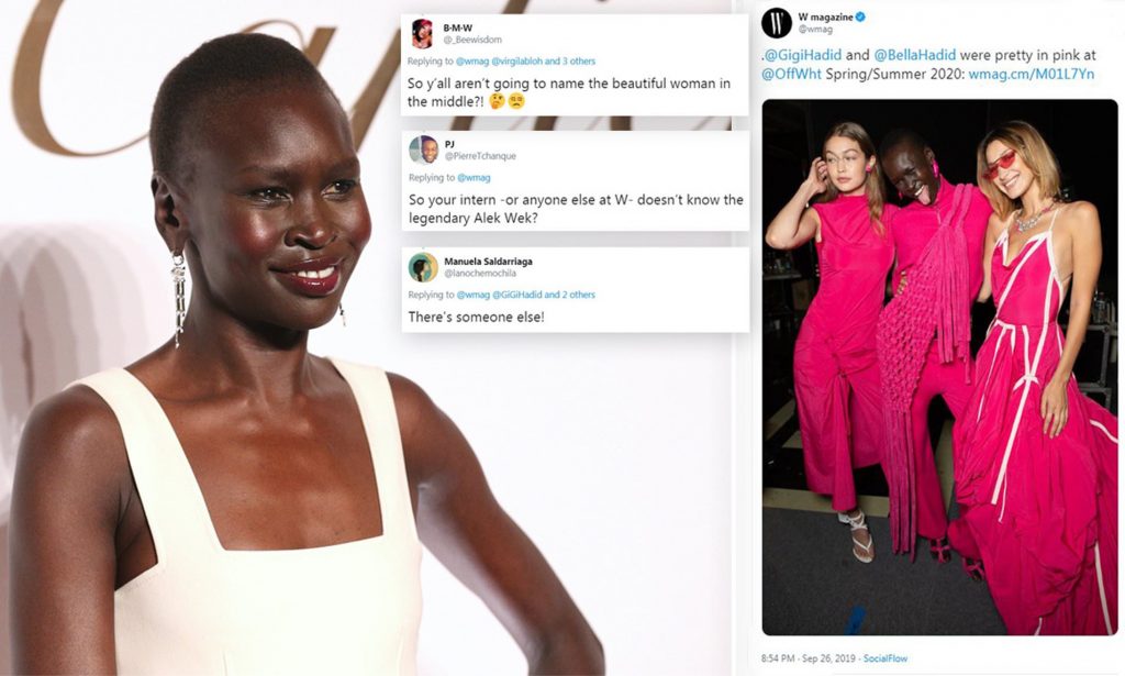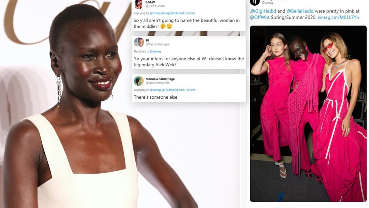 The Twitter account for W magazine was criticized last week after posting a photo of models Gigi Hadid, Bella Hadid and Alek Wek but only tagging Gigi and Bella, leaving Wek unidentified in the snap.