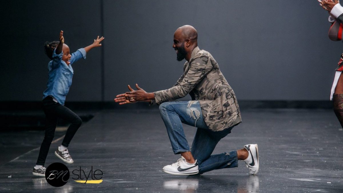 After presenting an astounding showcase complete with a violinist playing live as models walked the runway in covetable utilitarian looks from the Urban Jungle collection, Mai Atafo came on stage for his final bow and guess who hopped up on stage right into his arms? His adorable daughter! – Too sweet for words.