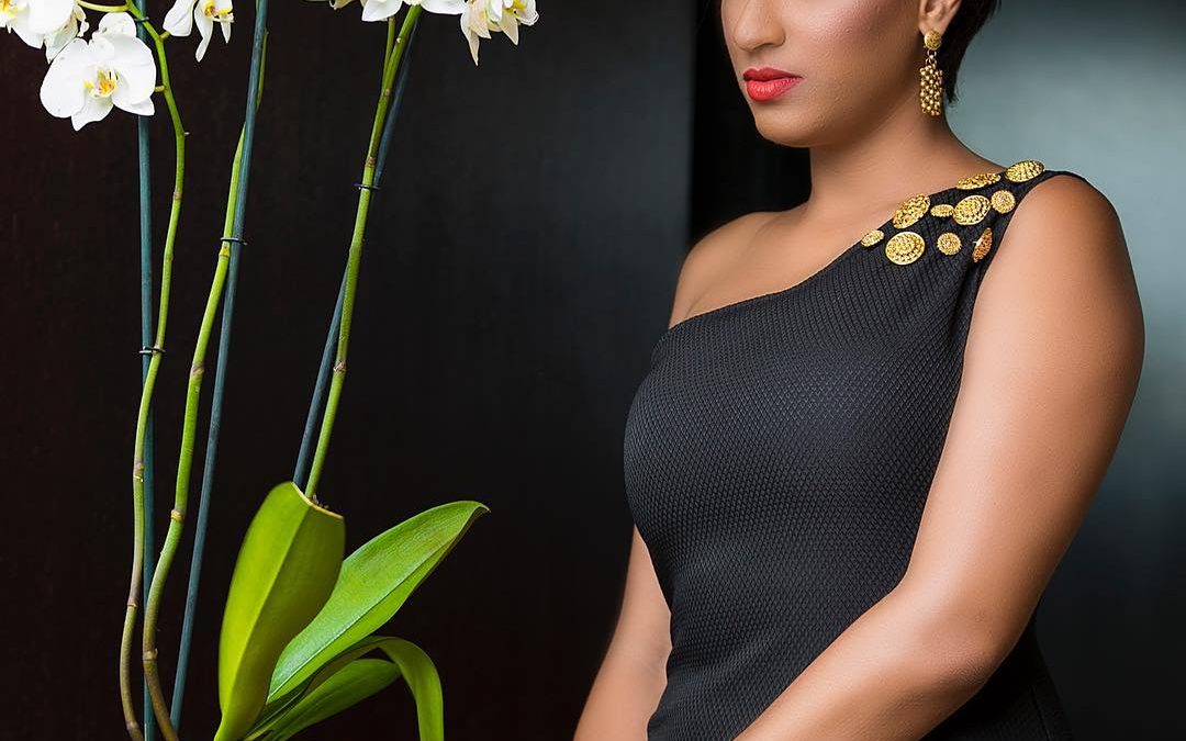 The curvaceous actress donned a mono sleeve dress with gold details and a fishtail finish just below the knee from bespoke brand Dia By S.EShe paired the outfit with a gold bracelet each on both wrists, a cocktail ring and pretty gold earrings.