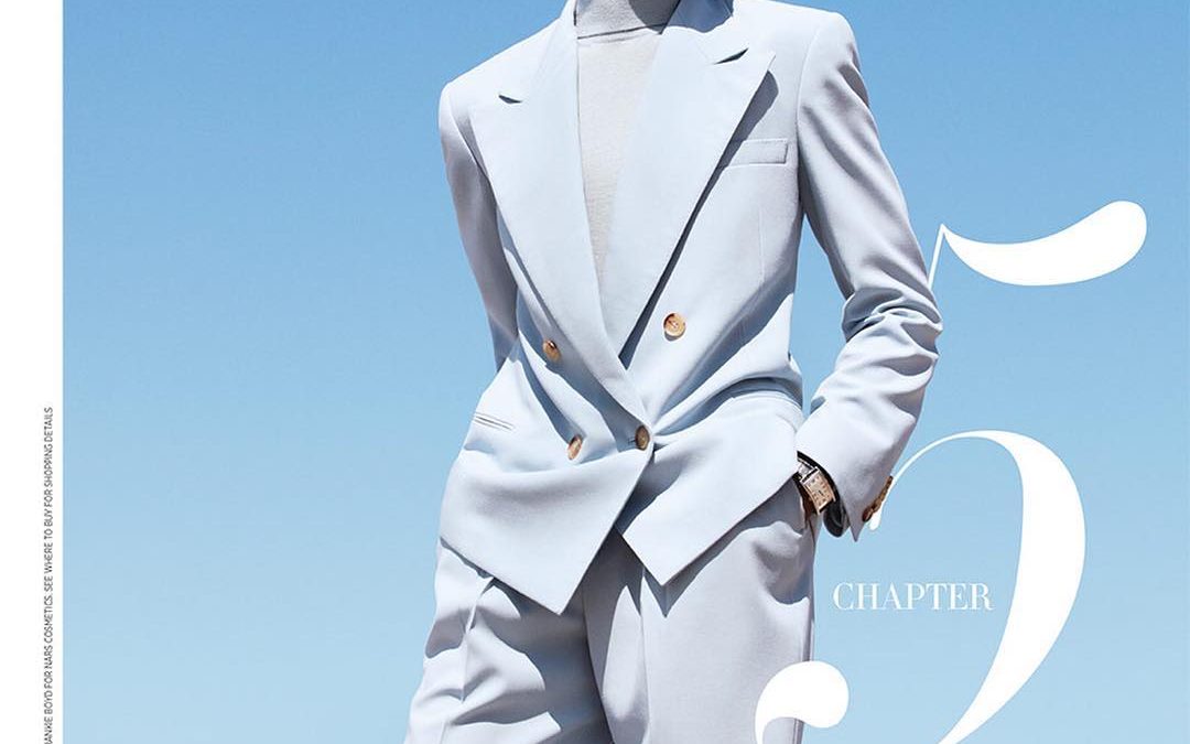 Her latest gig is a feature in Harper’s Bazaar October 2018 Issue. Photographed by Camilla Akrans and styled by Patrick Mackie she posed for the “unretouched” shoot, following the theme of this month’s issue, wearing stunning on trend suits from Alexander McQueen, Oscar de la Renta and Ralph Lauren.
