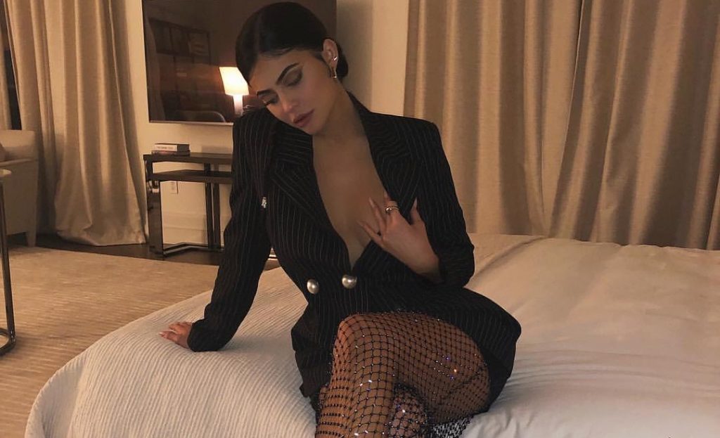 Weekend Slay! Kylie Jenner Stuns In Pinstripe And Sparkling Fishnet Combo