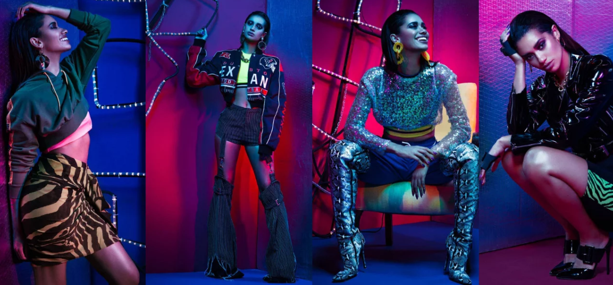 From the pages of Cosmopolitan South Africa, check out this stunning spread of MTV v-jay Kim Jayde Robinson in a multi-page editorial in the magazine’s Influencer issue, featuring urban styles shot in myriad colours with technicolor backlighting. The award-winning tv presenter and fashion influencer showed off her fashion chops to the