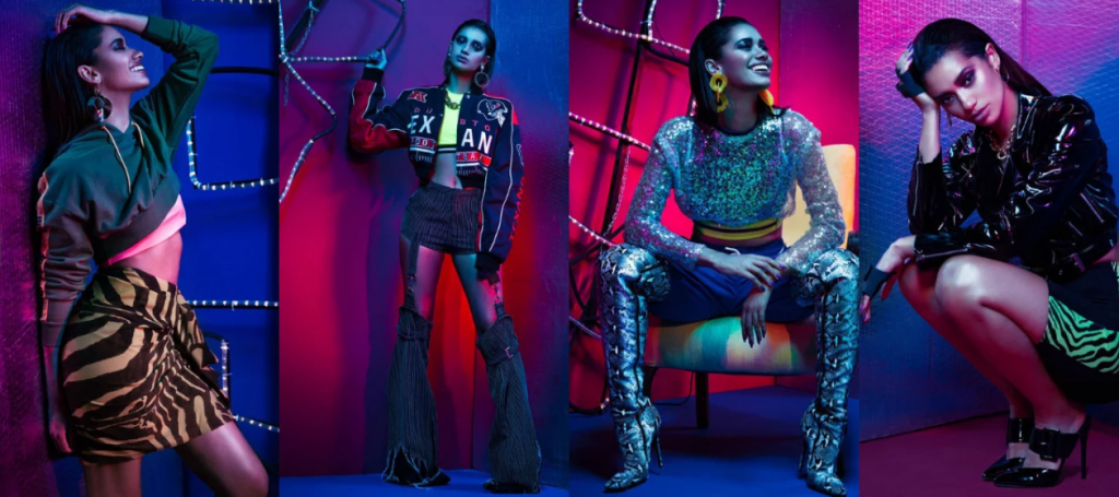 From the pages of Cosmopolitan South Africa, check out this stunning spread of MTV v-jay Kim Jayde Robinson in a multi-page editorial in the magazine’s Influencer issue, featuring urban styles shot in myriad colours with technicolor backlighting. The award-winning tv presenter and fashion influencer showed off her fashion chops to the