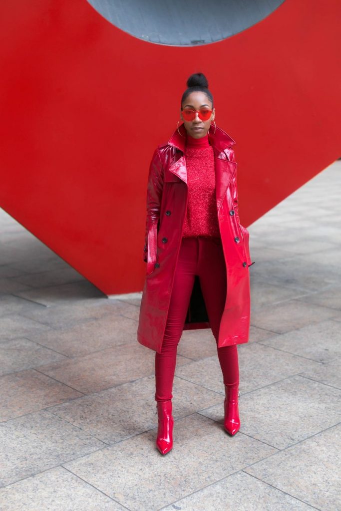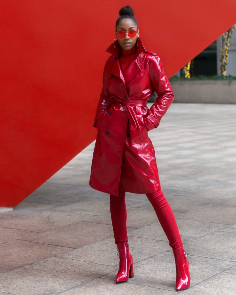 Chinyere completed the fierce look by carefully accessorizing her outfit with vintage sunglasses and loop earrings. What a gorgeous way to wear the monochromatic fashion trend.