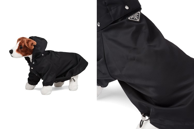 Constructed with elasticized trim, each dog raincoat features Prada’s signature enameled metal triangle logo, a detachable hood, and metal hardware. Sized at H 42 cm x W 24 cm, the Prada dog raincoat retails for $520 USD over at Prada’s web store.