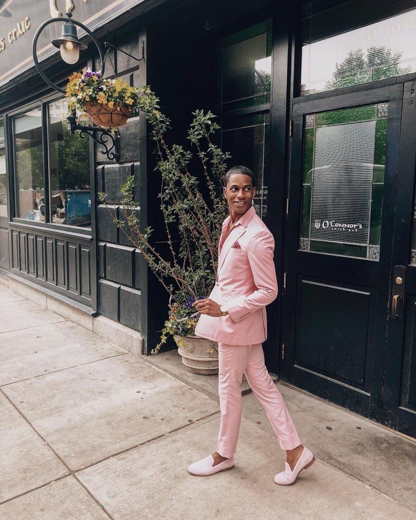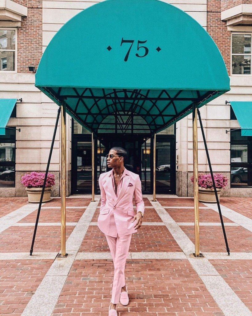 Denola, who has added acting to his many crafts, shared photos from his current vacation in Boston, USA, showing us how to rock an all pink ensemble as a guy. It’s definitely an all pink affair on this one; Pink single button double-breasted suit by Rhobes Clothing Co, pink shirt, paired with an equally pink Duke & Dexter loafers. He accessorised with a pink pock square, multiple gold necklaces and gold wristwatch.
