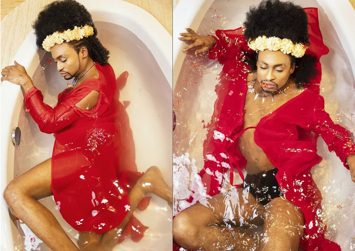 Media personality, Denrele Edun, is causing a stir online after he shared these photos of himself posing in a bathtub.