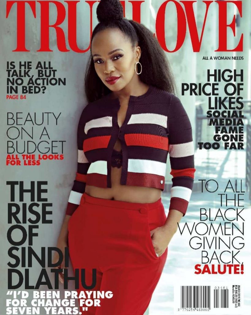 South African actress Sindi Dlathu is the cover star for True Love Magazine‘s March 2019 issue!