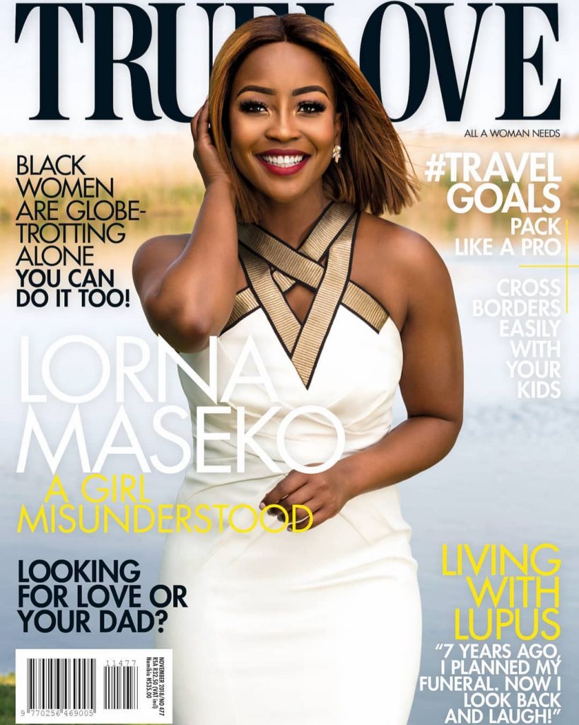 Lorna Maseko, a South African TV personality, looks stunning as the cover star of the latest issue of True Love Magazine.