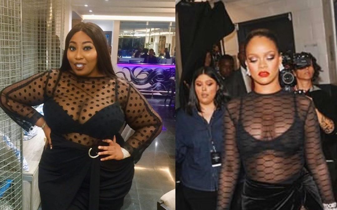 The throwback photo which has since garnered over a thousand likes saw the media personality in a collage with Rihanna who spotted a slightly similar ensemble for her New York Savage x Fenty show in 2019.