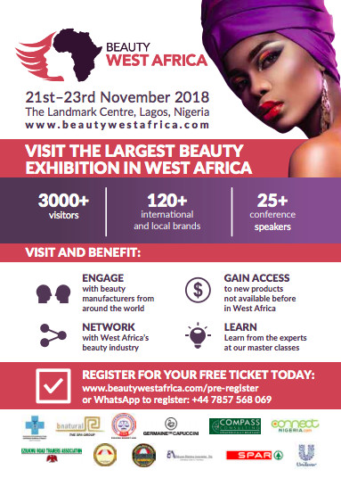 Beauty West Africa will be opening its doors again on the 21st to 23rd of November 2018 at the Landmark Centre, Victoria Island. The exhibition will host over 120 brands from across the world showcasing the latest cosmetics, beauty, hair, skin and nail care products from all over the globe. Be the first to see these international brands in Nigeria!