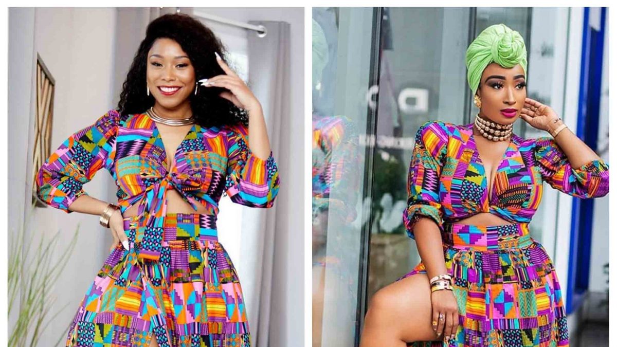 In today’s episode of Who Wore It Better, we have Chic Ama and Addie Olutola beautifully dressed in a purple and Pink Kente Bunmi Crop top and Emi Skirt.
