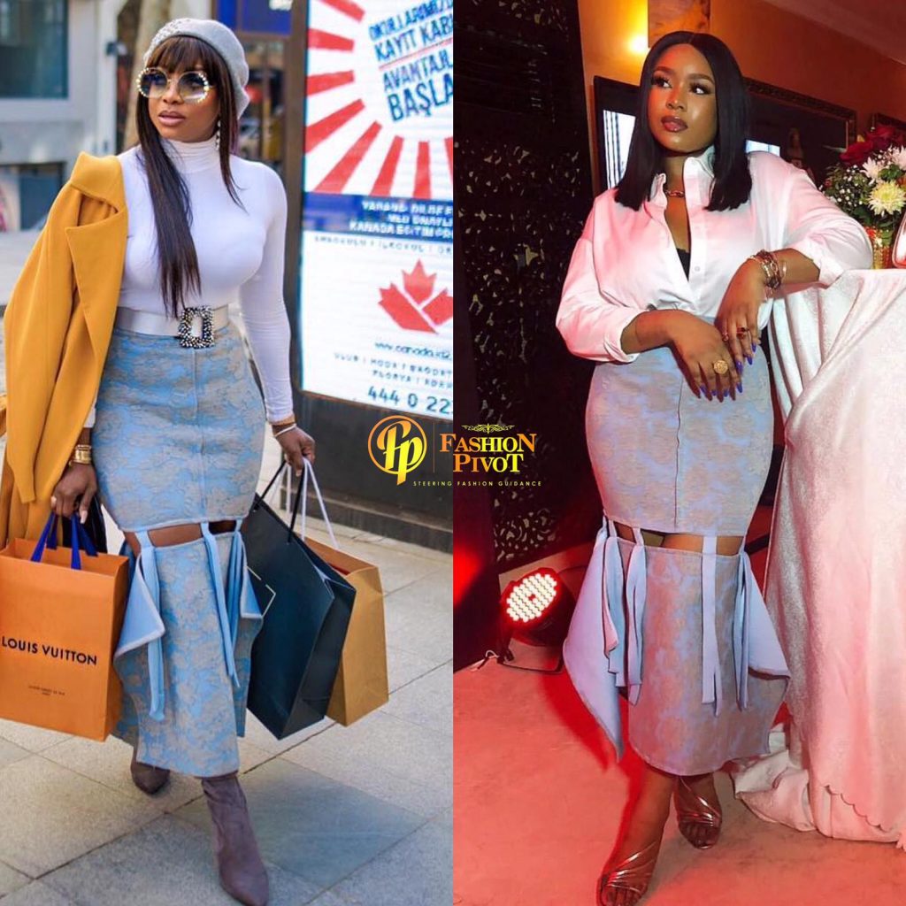 On today’s Who Wore It Better, we spotted stylistas Mimi Onalaja and Chioma Ikokwu aka GoodHair in the same stunning skirtNen skirt from womenswear brand Shefa Luxe.